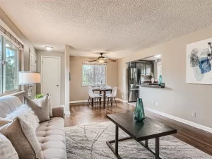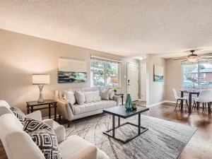 This beautiful, updated end unit is part of a triplex. It has a beautiful private backyard with a covered patio that is perfect for entertaining, enjoying a beverage after work, or enjoying your coffee before heading off to work. The kitchen is brand new with new quartz counter tops, cabinets and flooring with newer appliances. This home has two bedrooms and one bath upstairs along with a primary suite in the basement with a full room walk-in closet that is an entire room to itself, a full bathroom and it has a room attached to the primary room which the owners used as a second living room, entertainment room and office. The neighborhood is quiet and there is plenty of street parking available for guests while you drive into your 1 car garage. There is easy access to the restaurants and shops in Central Park. Once you arrive you will be able to imagine living here!