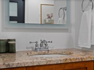 Private, oversized terrace—ideal for morning coffee or dinner under the stars, two deeded parking spaces in a secure, heated garage, updated kitchen with granite countertops, spacious primary suite with 5-piece bath